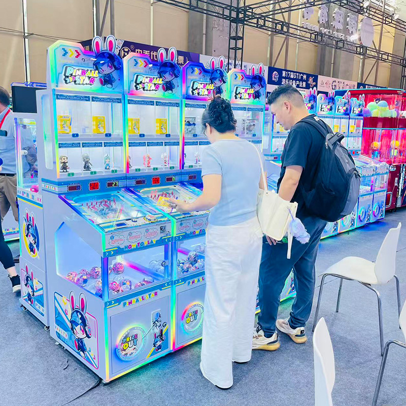 2. Multiple prizes on display (gachapon, figurines, blind boxes, etc.).