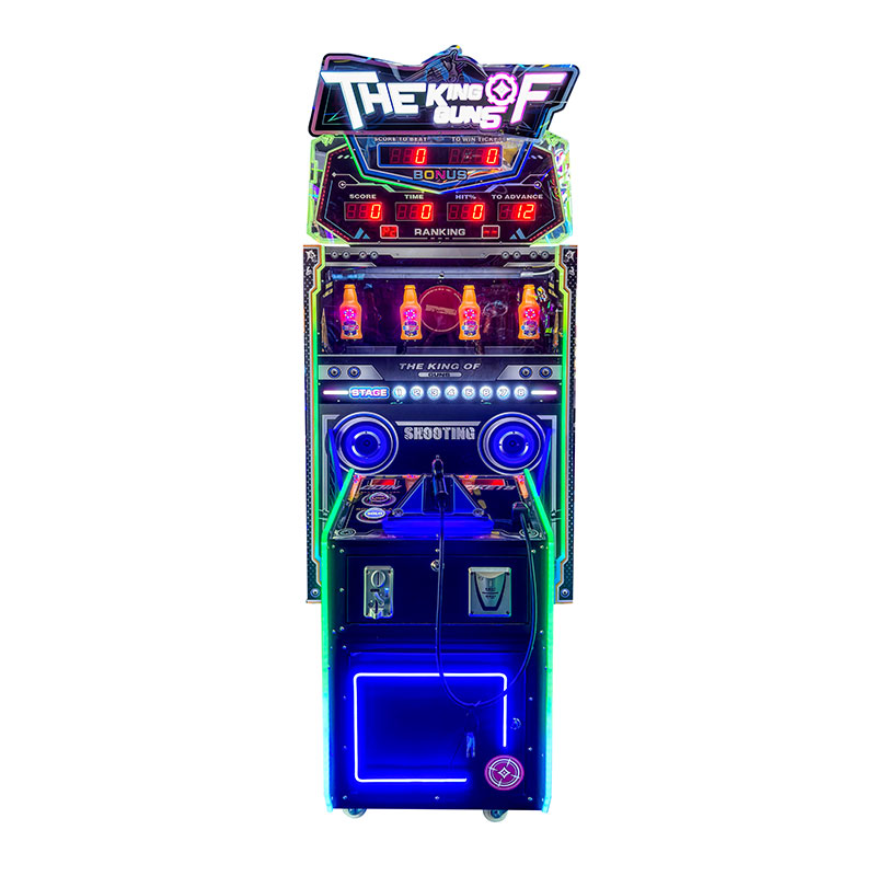 The game has 8 levels. After the game starts, each level has a different gameplay, including fixed-point shooting/moving target shooting, random bottle shooting, and combo shooting. The game difficulty increases as you progress. If you fail a level, you can insert a coin to revive and continue the challenge. You can only enter the next level after passing the previous one.